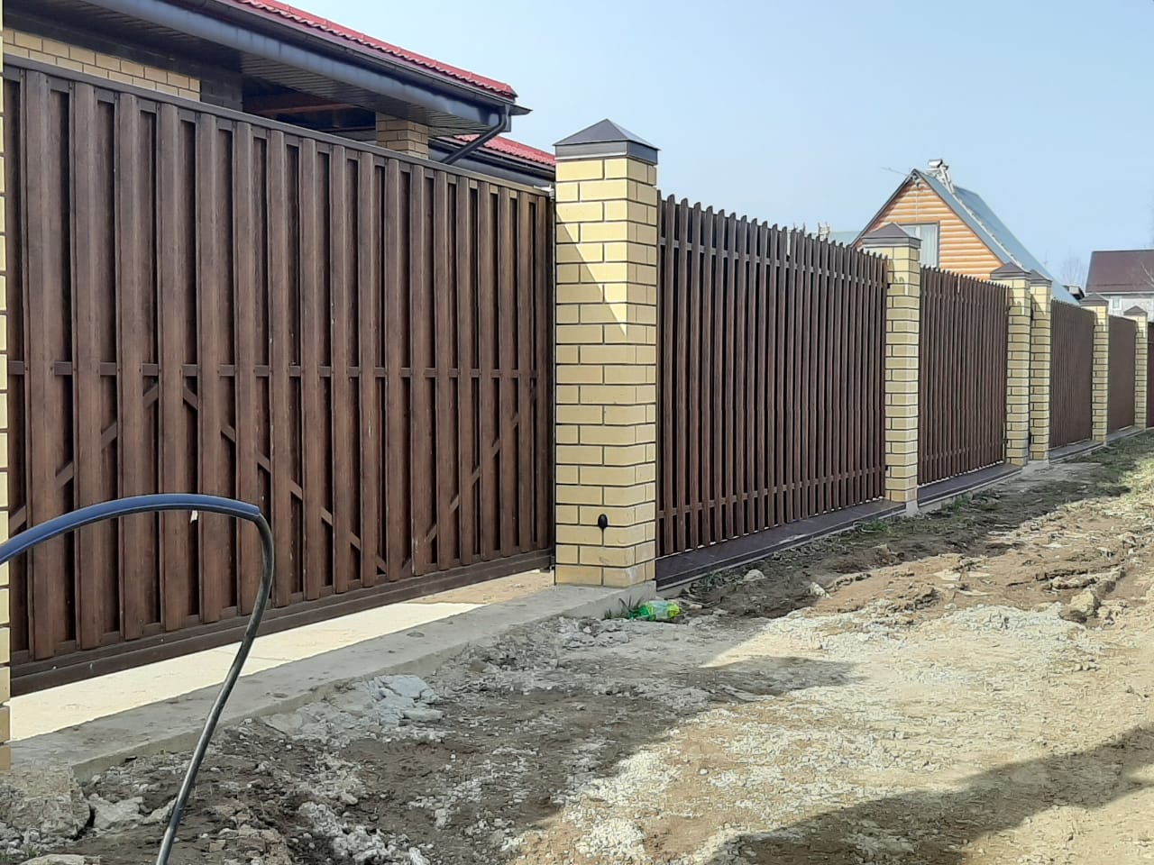 Заборы и ограждения из евроштакетника с кирпичными столбами 300 метров в Шацке