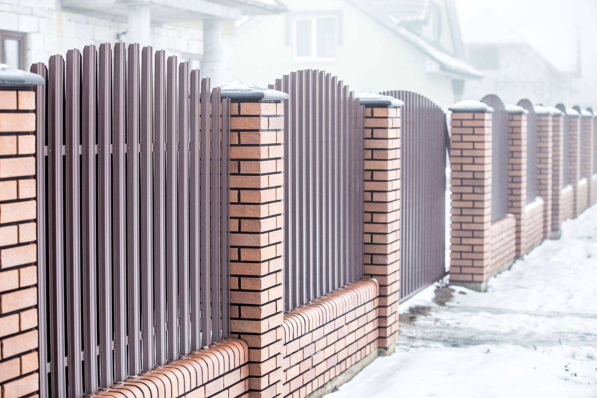 Заборы и ограждения из евроштакетника с кирпичными столбами 40 метров в Шацке