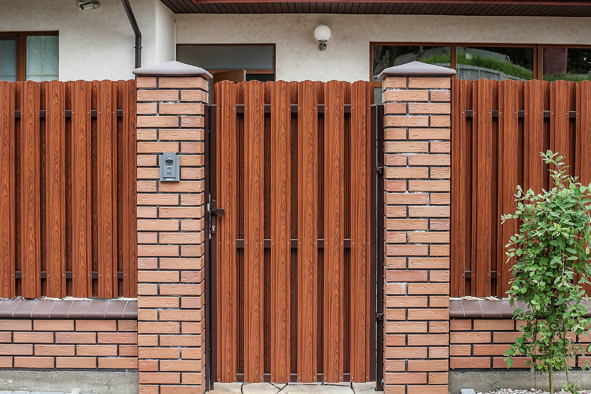 Заборы и ограждения из евроштакетника с кирпичными столбами 15 соток в Шацке