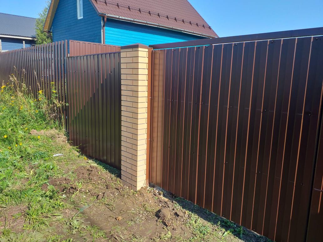 Заборы и ограждения из профнастила с кирпичными столбами 50 метров в Шацке