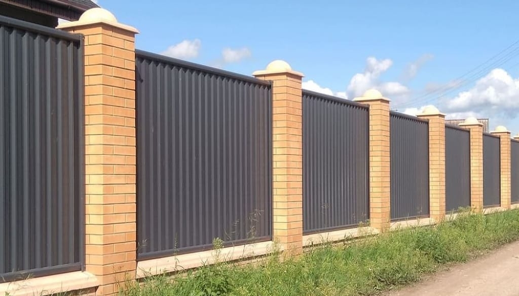 Заборы и ограждения из профнастила с кирпичными столбами 500 метров в Шацке