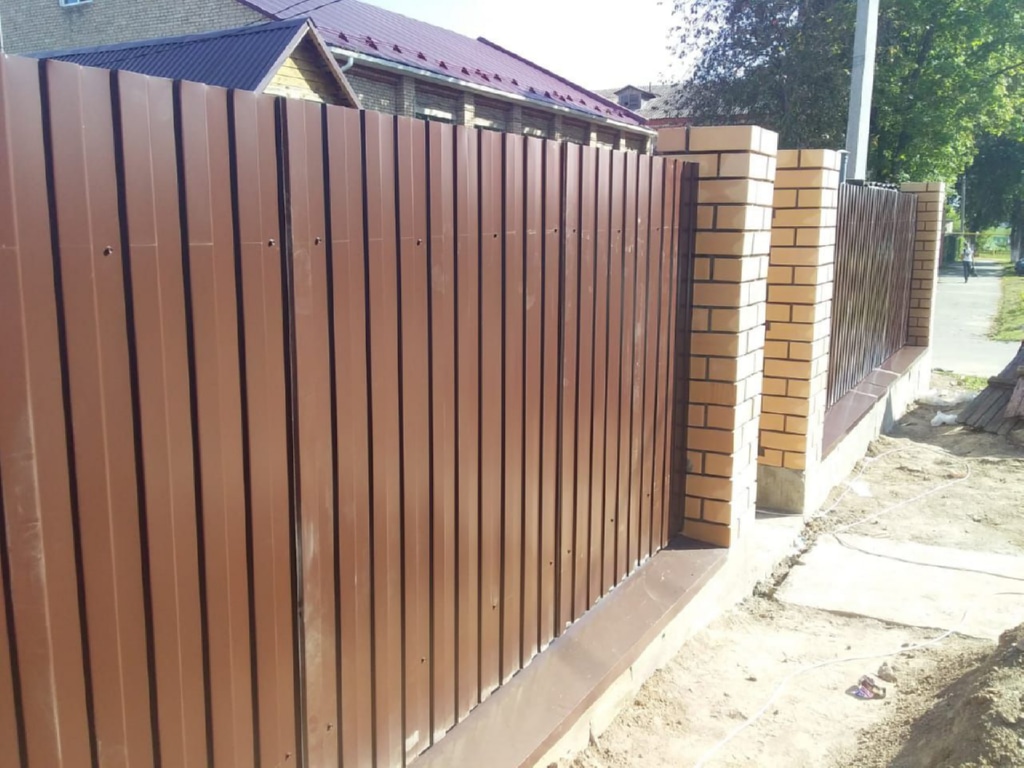 Заборы и ограждения из профнастила с кирпичными столбами 15 соток в Шацке