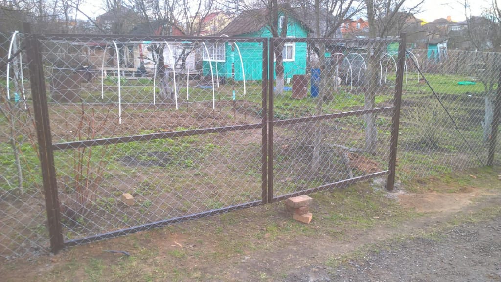 Забор из сетки рабица с забивными столбами 150 метров в Шацке